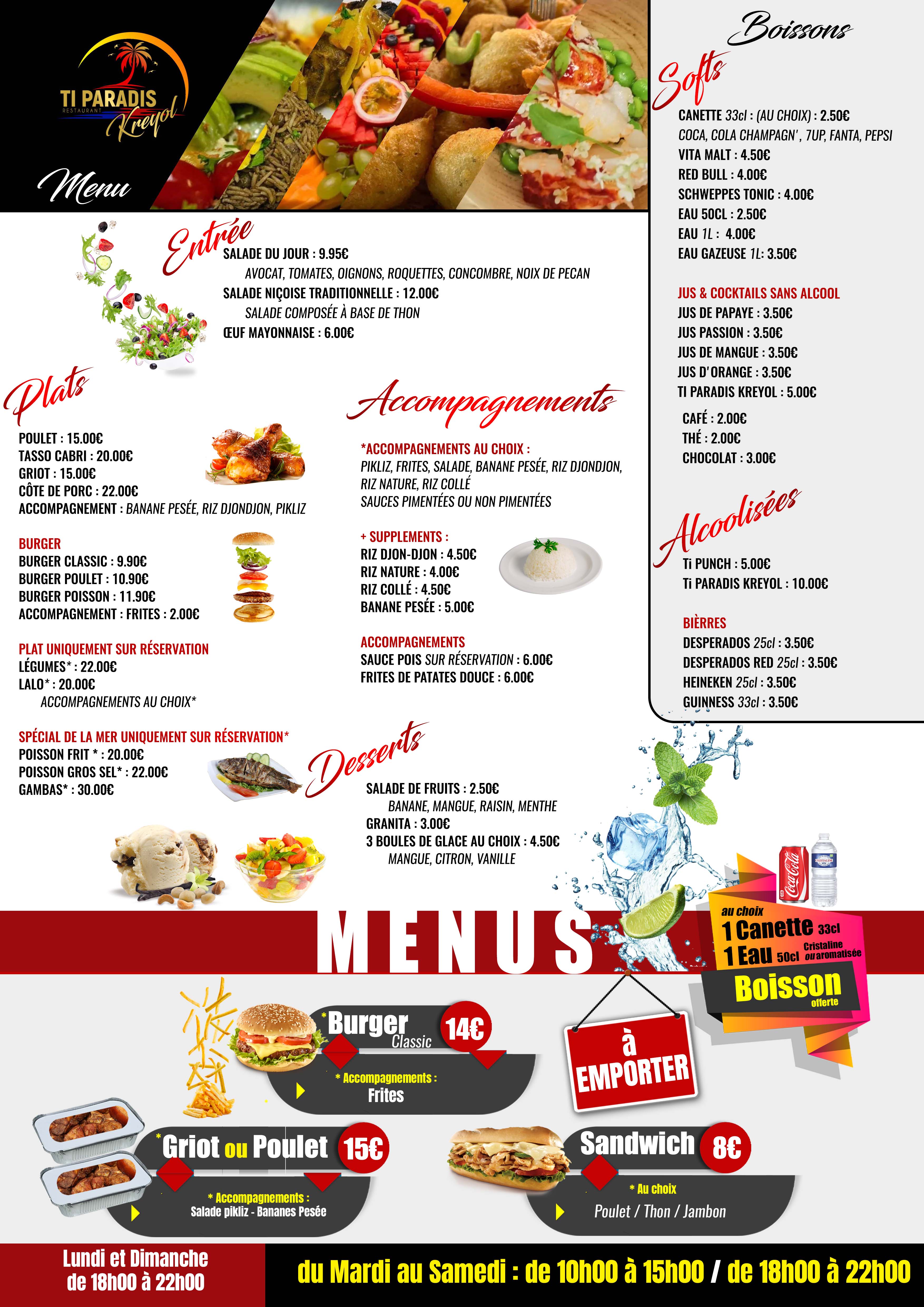 Commandez en ligne à emporter ou réservez une table "Ti Paraadis Kreyol.com"